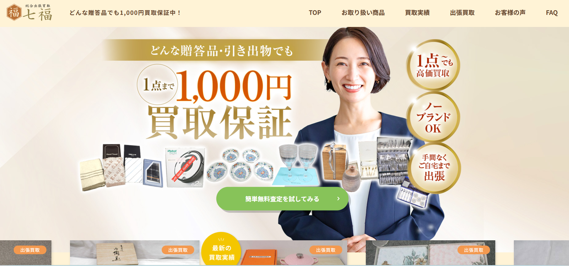 そんな不用な贈答品を賢く整理したい方におすすめなのが、総合出張買取「七福」です。なんと、どんな贈答品でも「最低1000円買取保証」という驚きのキャンペーンを実施しており、今、片付けを検討している方々の間で大きな話題となっています。
