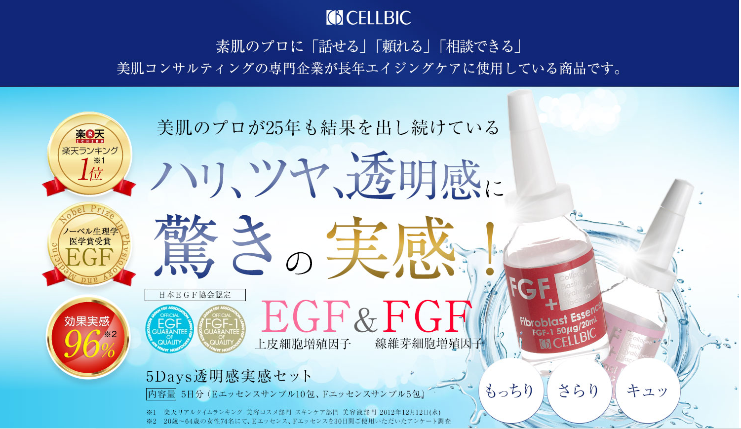 美肌づくりの現場から誕生したEGF・FGF美容液 セルビック-Eエッセンス、Fエッセンス。