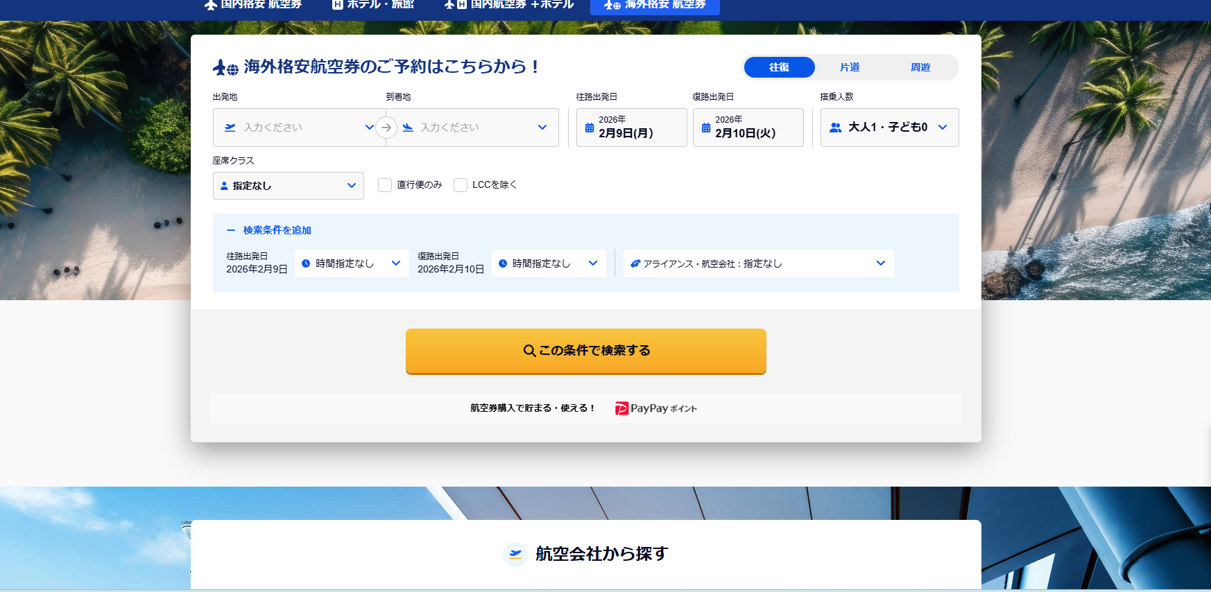 ① ANA・JALからLCCまで一括最安値検索